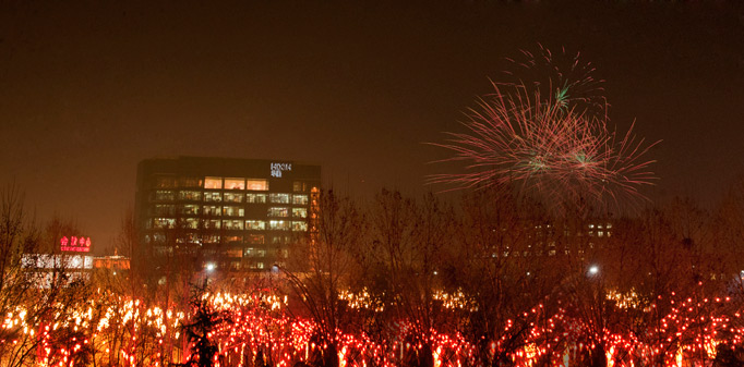 春風(fēng)夜放花千樹(shù),奇光異彩美人間。各具特色的禮花依次升起綻放,魅力多姿、絢麗多彩,煙花朵朵噴火流霞,禮炮聲聲春雷滾滾,光芒耀眼,華彩熠熠。夜空中百花爭(zhēng)艷,百鳥(niǎo)飛翔,這是美好的畫(huà)卷,這是幸福的篇章?!盎ㄩ_(kāi)富貴”、“錦繡前程”、“仙女散花”、“笑臉迎賓”……形態(tài)各異的禮花絢麗綻放,一會(huì)兒像盛開(kāi)的花朵,一會(huì)兒如騰騰而上的駿馬,一會(huì)兒似散落人間的群星,映紅了人們歡欣鼓舞的笑臉,照亮了不斷跨越發(fā)展中的華勤工業(yè)園。今夜,美麗的華勤燈火輝煌,漫天彩練;今夜,節(jié)日的華勤喜氣洋洋,溫馨和諧。