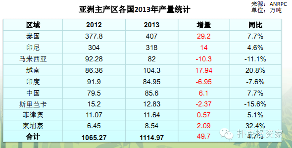 非洲、緬、柬、老近幾年增長迅速,增幅超10%,幾年前大規(guī)模種植陸續(xù)開割。